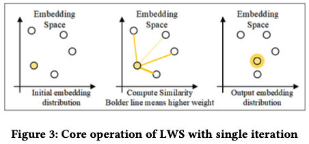 해당 과정에서는 Local Weight Smoothing을 활용해 임베딩 공간에서 유사한 이웃에 더 가깝게 노드 벡터를 반복적으로 업데이트하고, 추천에 가장 적합한 아이템 임베딩을 최적화하는 것을 목표로 합니다.