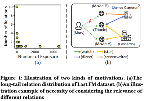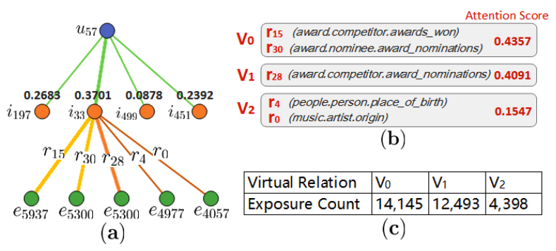 특정 Virtual Relation이 사용자 선호를 더 잘 반영하고, long-tail problem 문제를 완화했습니다. 그리고, 사용자는 2개의 Virtual Relation에 대해 다른 관심도를 보였습니다.