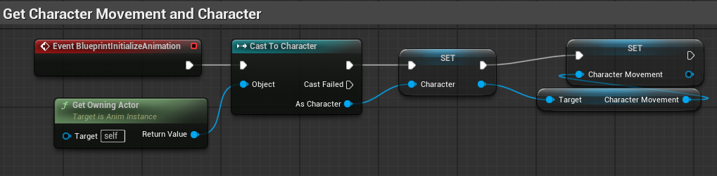 애니메이션 블루프린트가 초기화 될때 스켈레탈 메쉬의 액터클래스 에서 Character클래스를 캐스팅