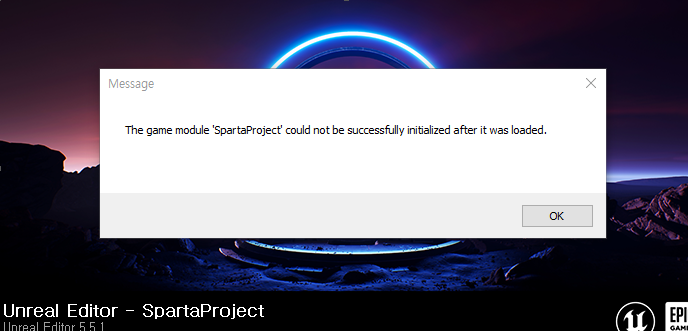 언리얼 C++ 파일을 삭제한다음 빌드 후 디버그로 에디터를 실행 시켜보는데 뜬 에러