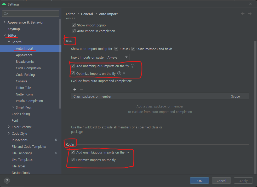 MainActivity라고 함.File > Settings > Editor > General > Auto Import