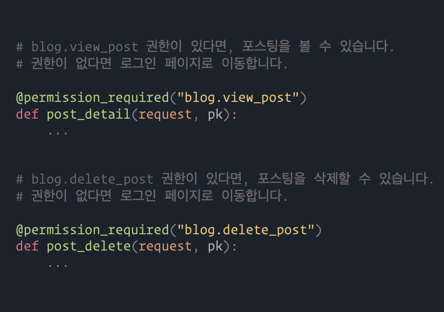 ๊ถํ ๊ด๋ฆฌ๋ฅผ ์ธ๋ฐํ๊ฒ ์ค์ ํ ์ ์์ด์, ํน์ ์ฌ์ฉ์๋ ๊ทธ๋ฃน์๊ฒ๋ง ์ ๊ทผ์ ํ์ฉํ๋ ๋ฑ์ ๋ณด์ ์๊ตฌ์ฌํญ์ ๋ง์กฑ ๊ฐ๋ฅ.โ๏ธ View์์์ ๊ถํ ์ฒดํฌ