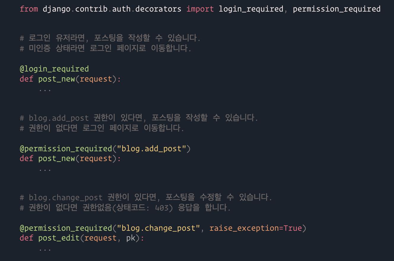 django.contrib.auth ์ฅ๊ณ ๊ธฐ๋ณธ ์ฑ์ ํตํ ๊ฐ๋ ฅํ ์ธ์ฆ๊ณผ ๊ถํ ์ง์