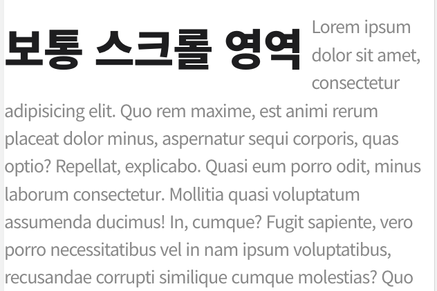 잡지 글처럼 Lorem~으로 시작하는 줄글이 '보통 스크롤 영역'과 상단 시작점이 같아지도록 하고 싶다.