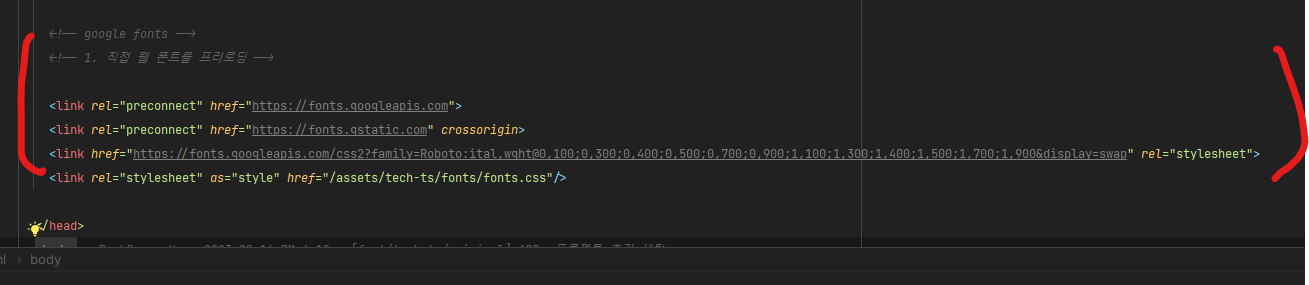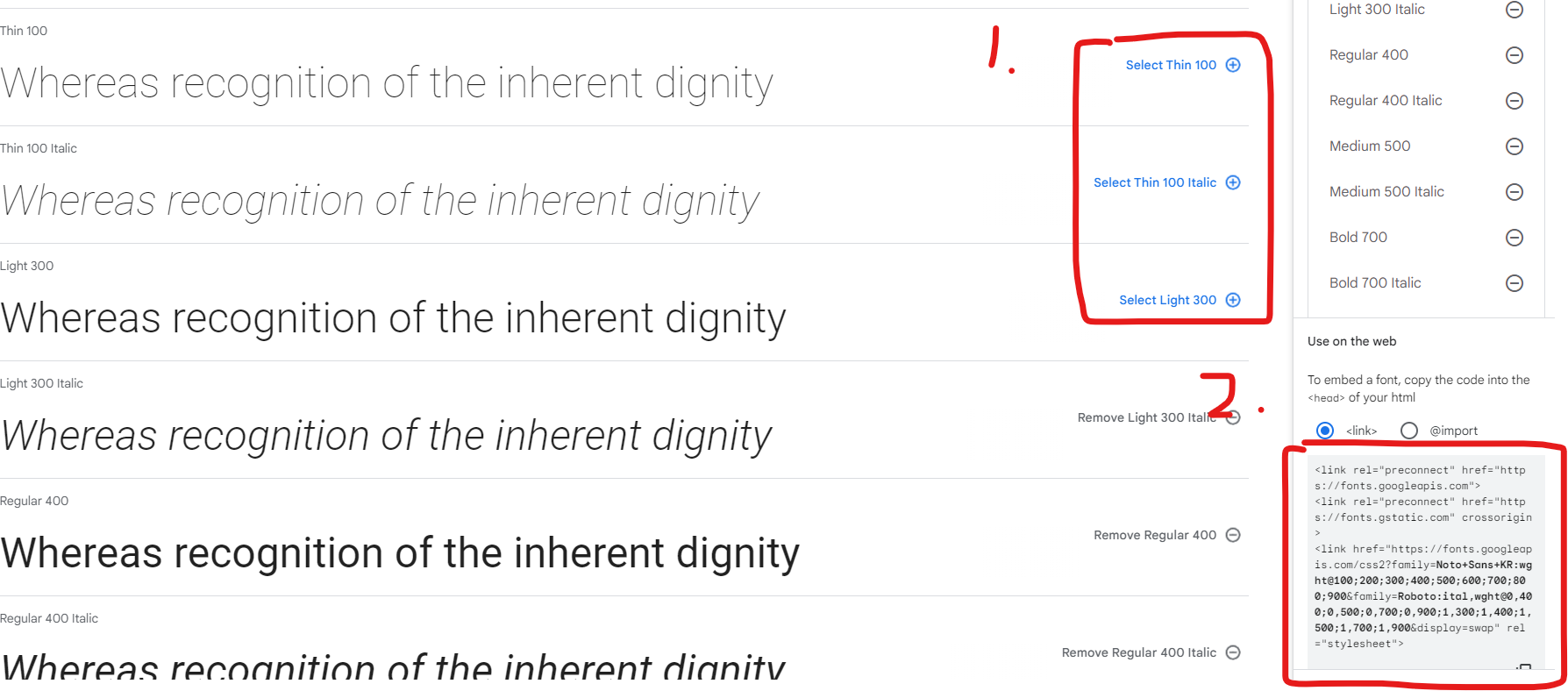 대부분 구글 폰트를 그대로 사용하는 경우가 많기 때문에, 프로젝트 전체가 구글 폰트라면, 아래 방식을 추천합니다.