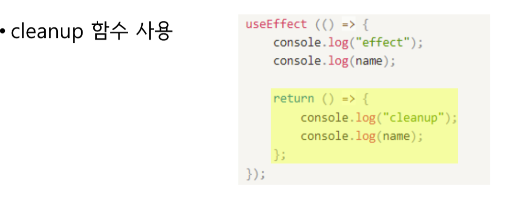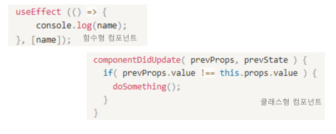 - 함수형에서 사용할때는 useEffect()라는 hook 사용한다.