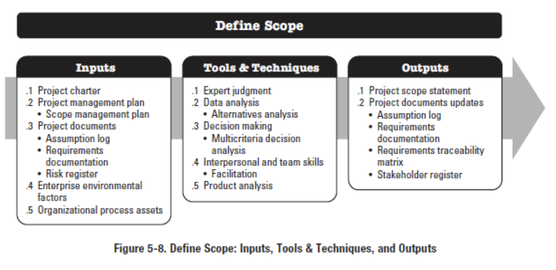 1) Planning scope management : Determining how the project's scope and requirements will be managed