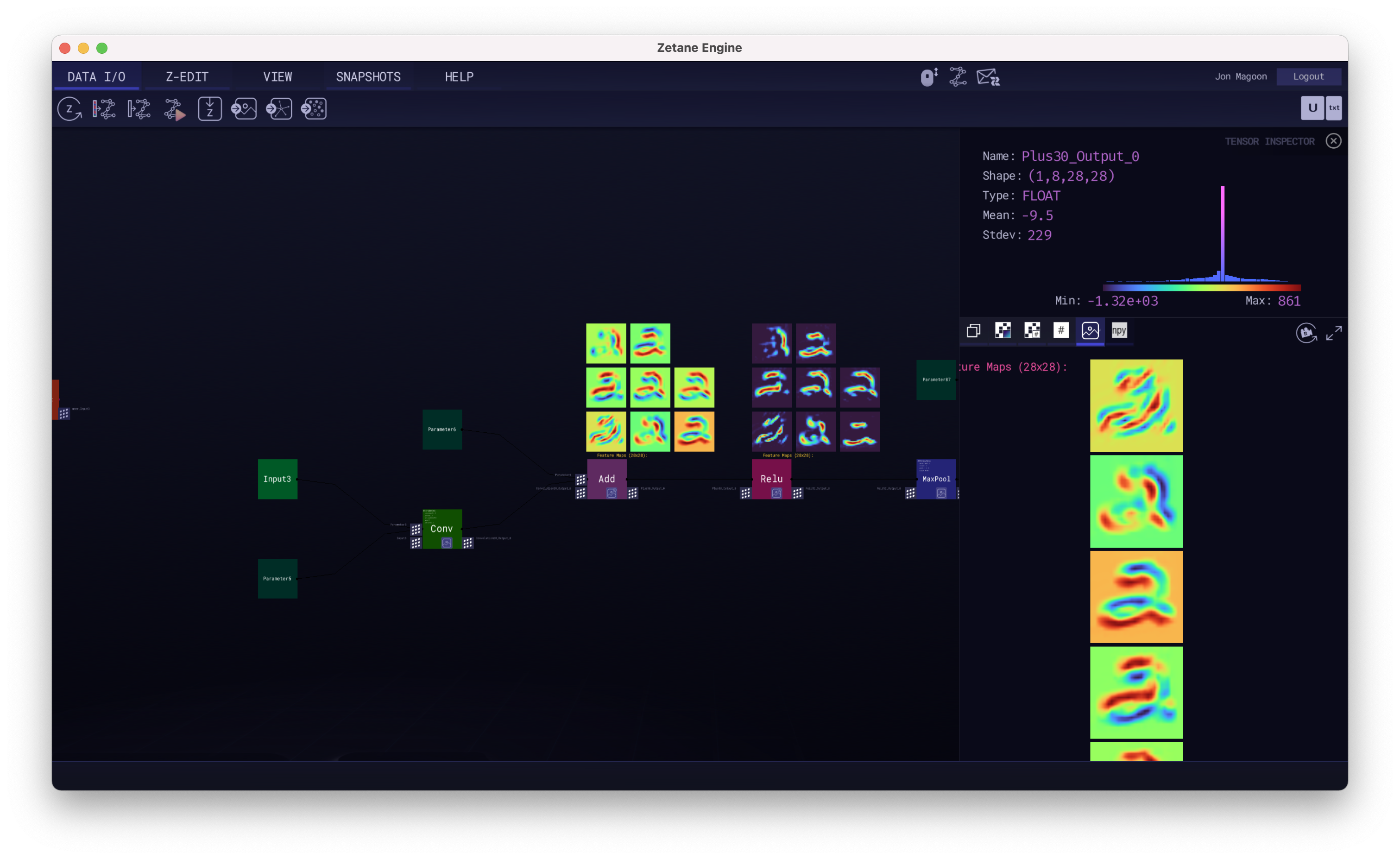 와 이건 저도 몰랐는데, zetane라는 툴도 있다고 합니다. 이 툴을 사용하면 onnx를 실행할 때 중간 결과도 아래와 같이 볼 수 있다고 하네요.