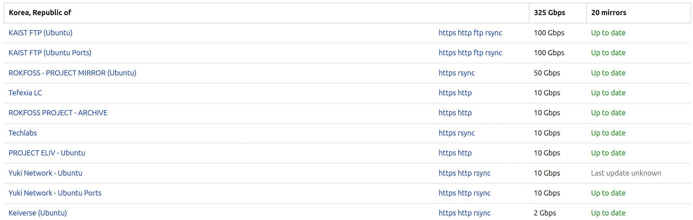에 가서 korea를 컨트롤 F로 검색하면 한국에서 빠른 미러 서버 검색할 수 있다.