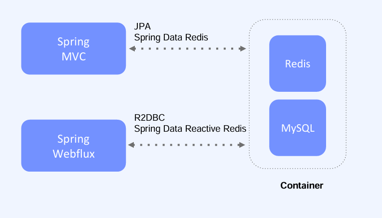 Redis와 Mysql을 Docker Container로 구동하여 동일한 환경을 구성하고 MVC,Webflux 각각의 성능을 Apache JMeter를 통해 테스트 해보자.