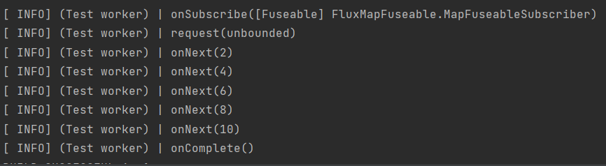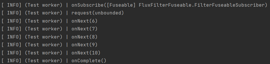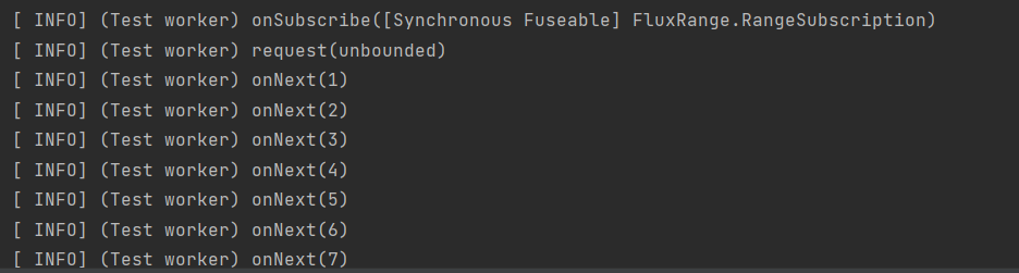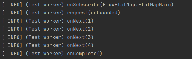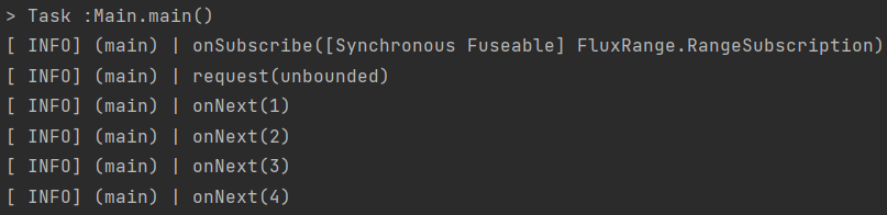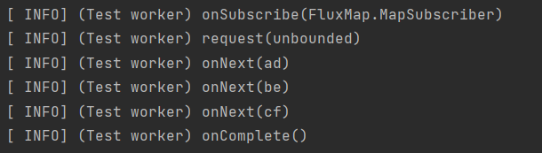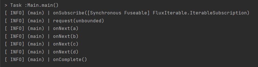return Flux.fromIterable(List.of("a","b","c","d")).log();
