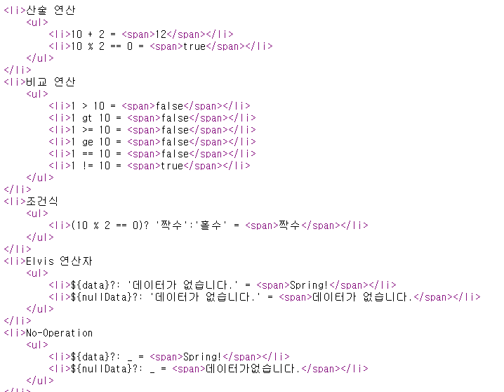 <li>${nullData}?: '데이터가 없습니다.' = <span th:text="${nullData}?: '데이터가 없습니다.'"></span></li>
