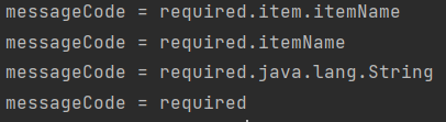 → 예: "order.minimumPrice"(bindingResult.reject("minimumPrice")호출 시, 객체명이 order라면 minimumPrice.order을 찾음)