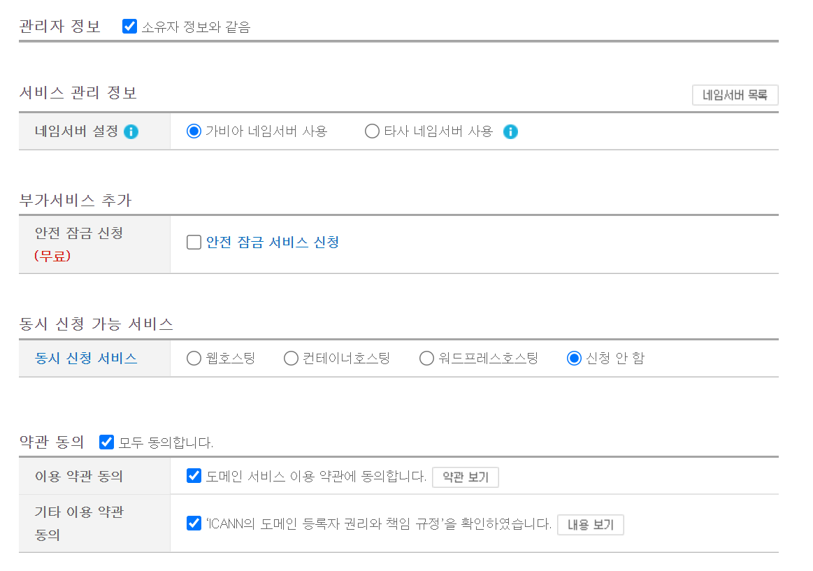 도메인은 방금 가비아에서 구매한 도메인 이름을 넣어준다.