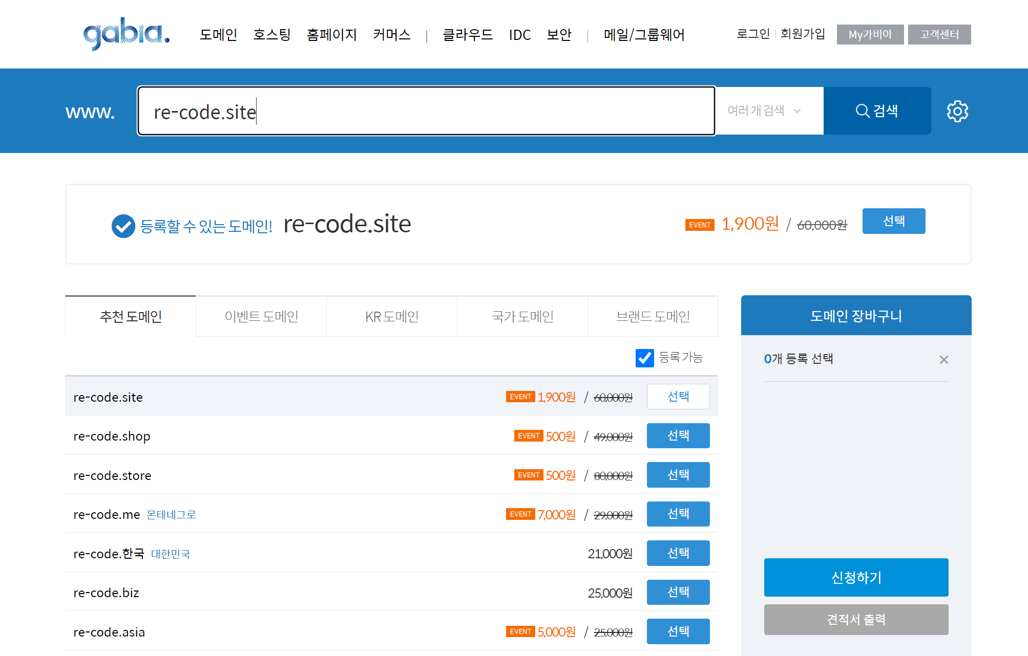 솔직히 같은 도메인이지만 가비아에서 사는게 훨씬 싸다.