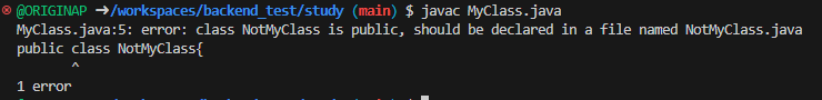 A . 위와 같은 에러가 발생한다. public 클래스를 선언하기 위해선 파일명과 동일해야함을 알 수 있다.