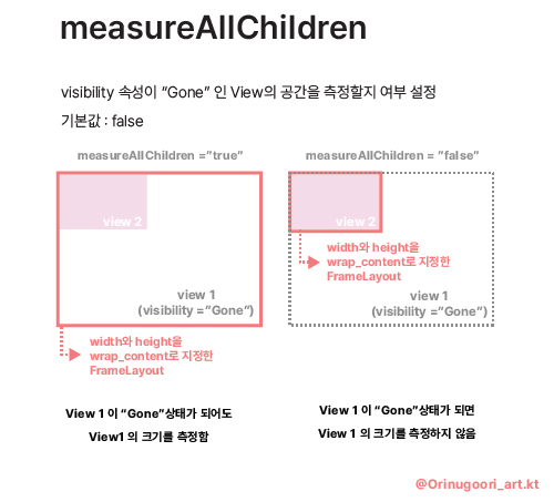 measureAllChildren의 속성값을 "true"로 설정하면 Visibility 속성이 "Gone"인 자식뷰의 크기를 측정한다.