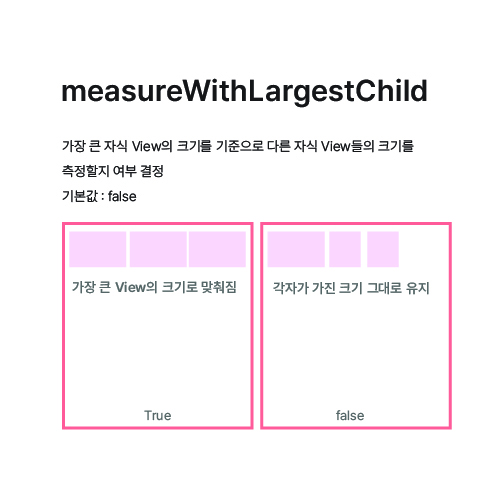 가장 큰 자식View의 크기를 기준으로 LinearLayout을 측정할지 여부를 설정