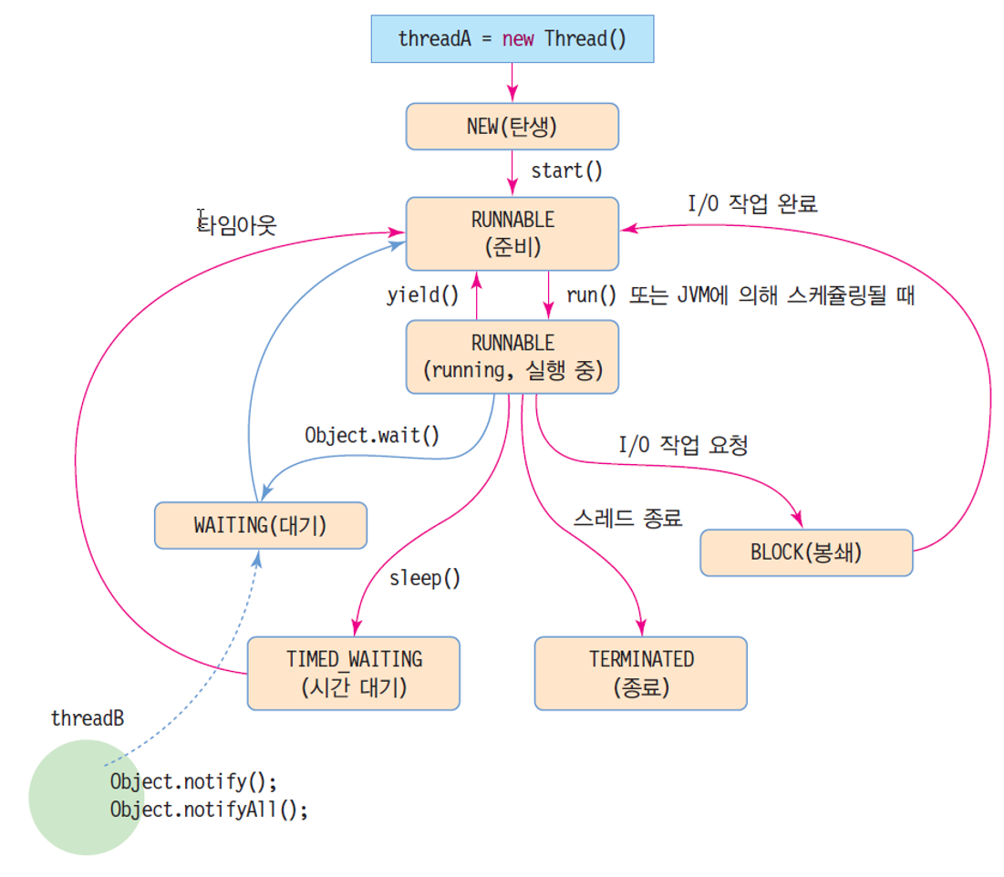 아래의 각 스레드 상태들이 JVM에 의해서 생성/관리된다.