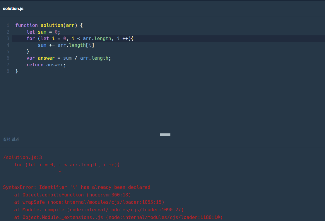 let 은 선언하는 느낌이라 재차 선언했다고 오류가 뜬 것 같다.