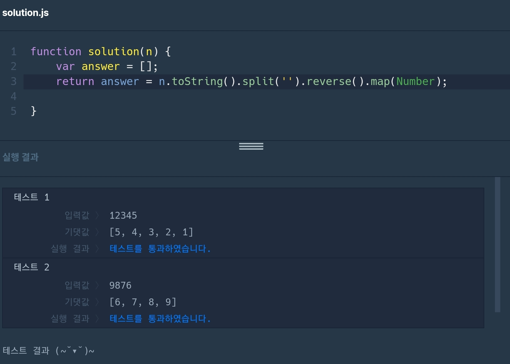 JavaScript 코딩테스트 (17일) 자연수 뒤집어 배열로 만들기