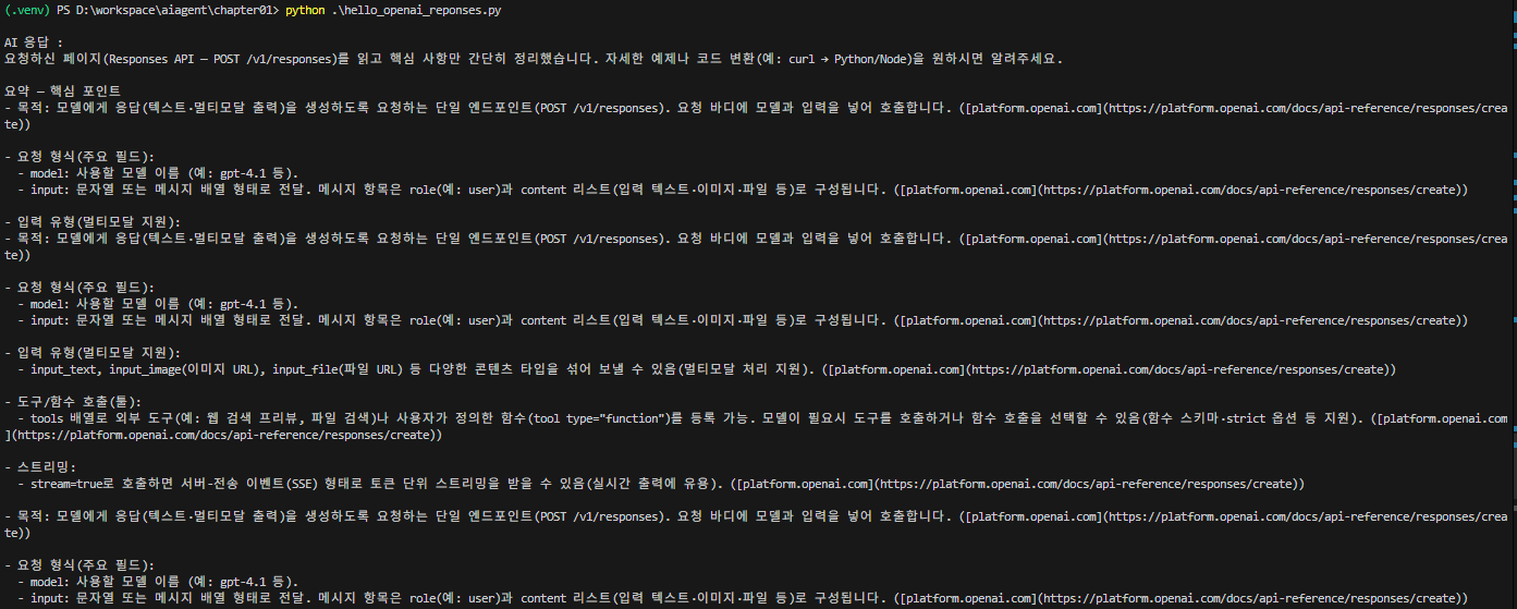 # OpenAI responses API를 사용하여 AI의 응답을 받는 함수