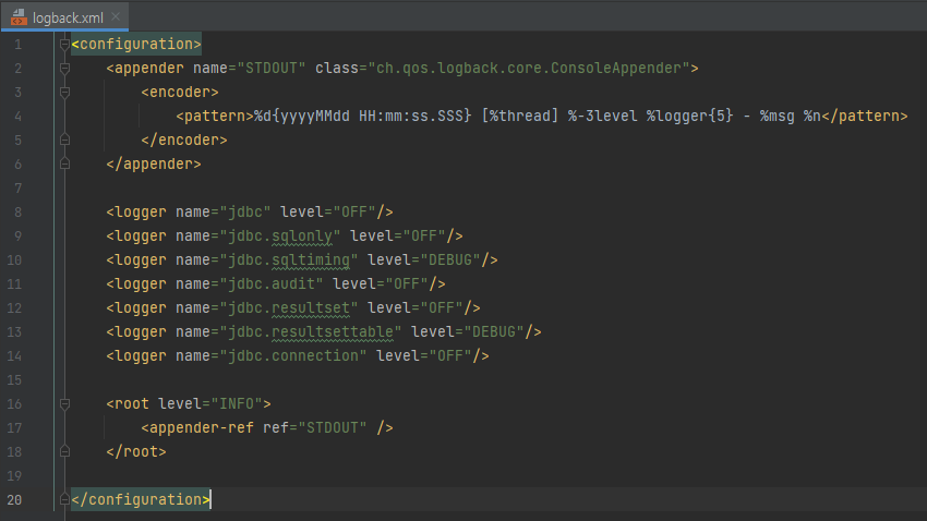 <logger name="jdbc.sqlonly" level="OFF"/>