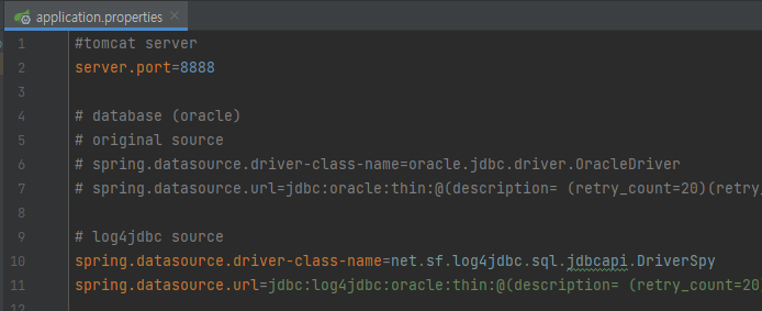 spring.datasource.url=jdbc:log4jdbc:oracle:thin:@[주소]