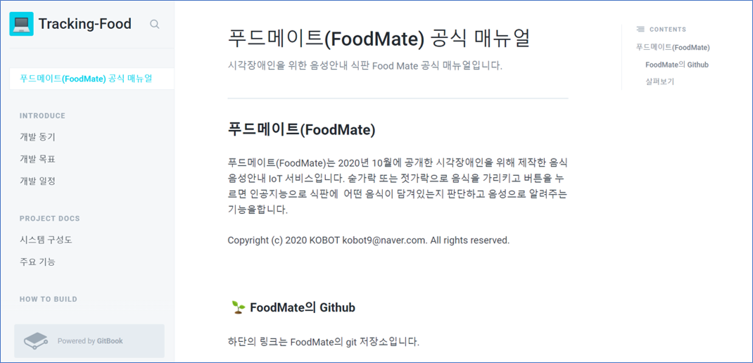 프로젝트를 만들고 github에 README.md 문서에 간단하게 설명하는 것이 아니라 직접 매뉴얼 사이트를 만들어 자신의 프로젝트를 설명할 수 있는 것 또한 중요하다고 생각했습니다.