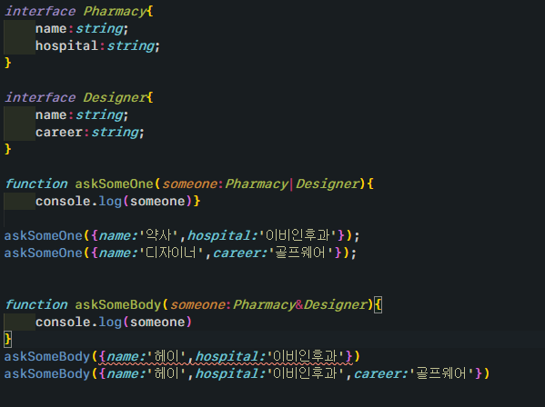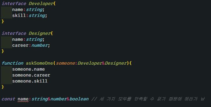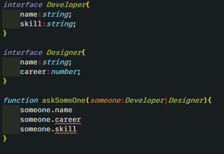 interface 두 개를 합쳤을 때, 공통된 속성에만 접근할 수 있다.