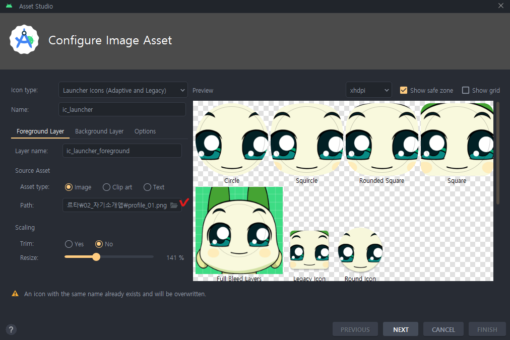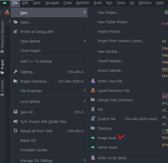 File -> New -> Image Asset 에서 변경 가능합니다.