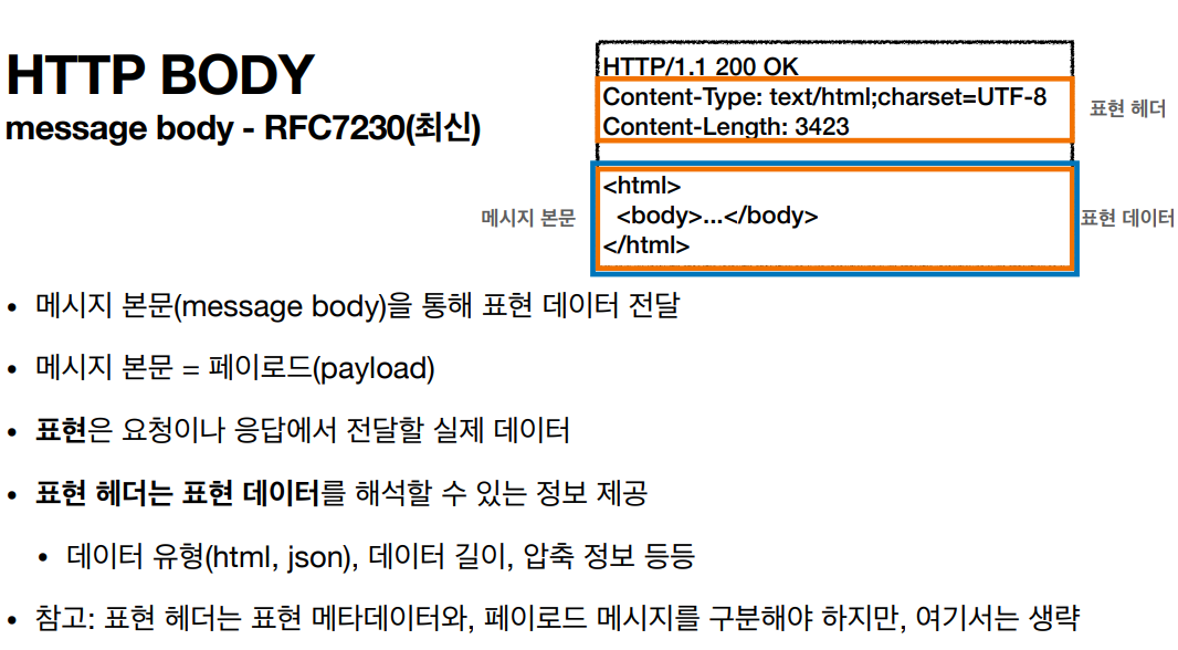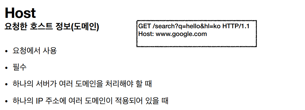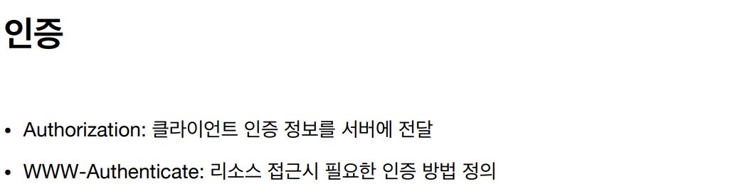 - 분할 전송 : Transfer-Encoding : chunked 등을 추가하여 대용량 데이터를 분할 하여 전송하며 Content-Length 를 추가하면 안된다. (스트림 읽는 방식과 비슷한 것인가?)