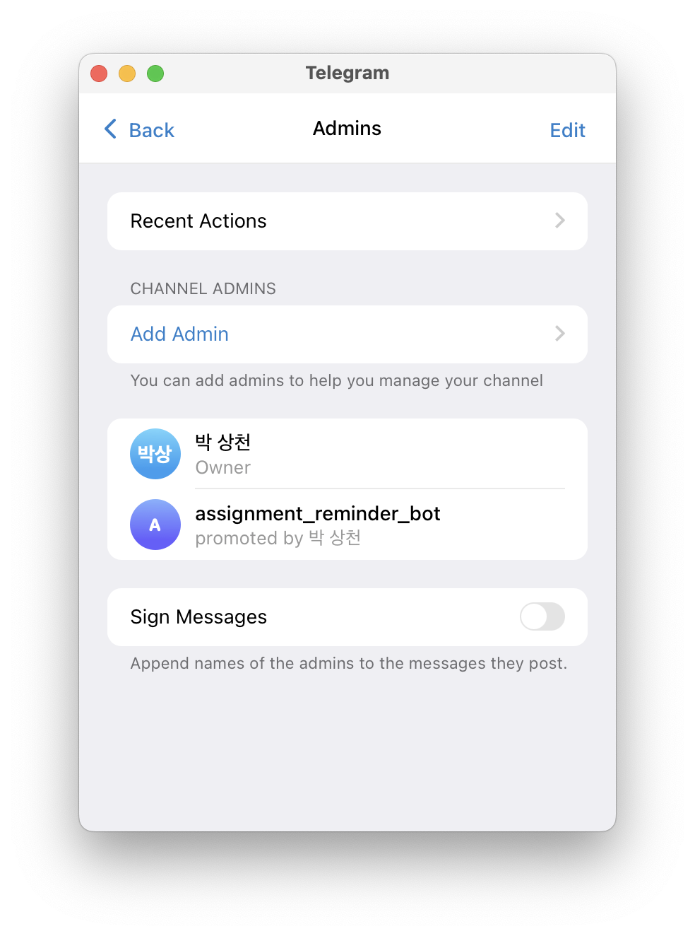 telegram API 연동 부분을 telegram_bot.py으로 분리하여 모듈화했다.