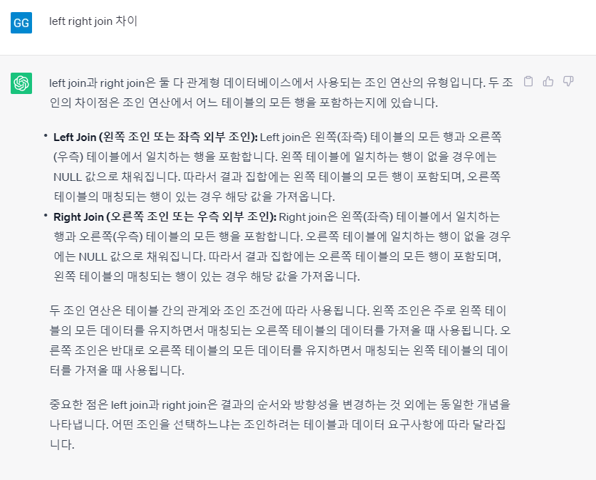 반대 방향, 일치하는 칼럼 출력 없으면 null