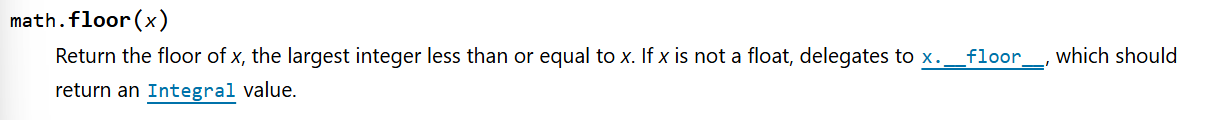 - 무조건 내림을 해서 가장 가까운 작은 정수를 반환한다.