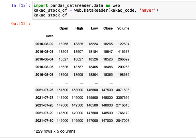 kakao_stock_df['Close'] = kakao_stock_df['Close'].astype(int)import pandas_datareader.data as web