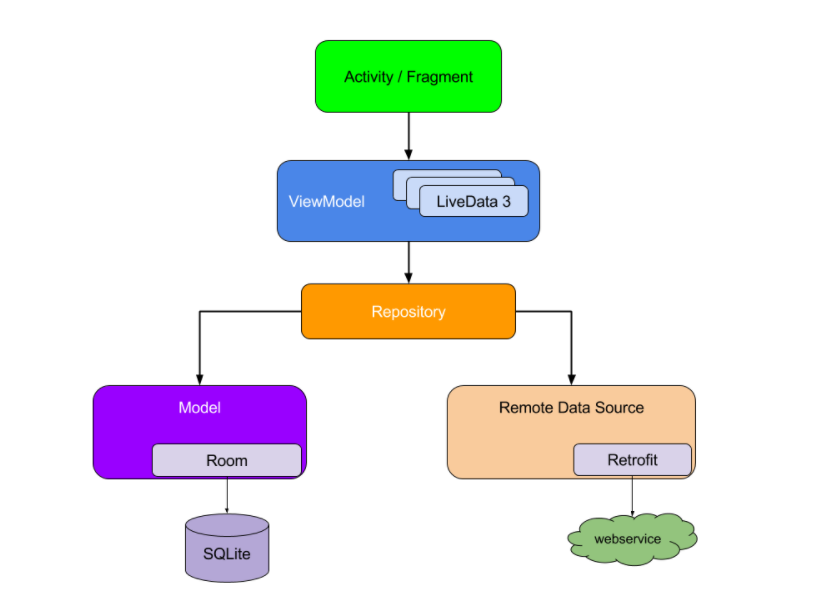 예를들어, room 혹은 retorfit을 통해 데이터를 받아야 하는 상황이라면, ViewModel 에서 바로(직접) data에 접근하여 가져오는 것이 아니라, Repository가 데이터에 접근하여 가져온 데이터를 ViewModel에게 전달해주게 됩니다.