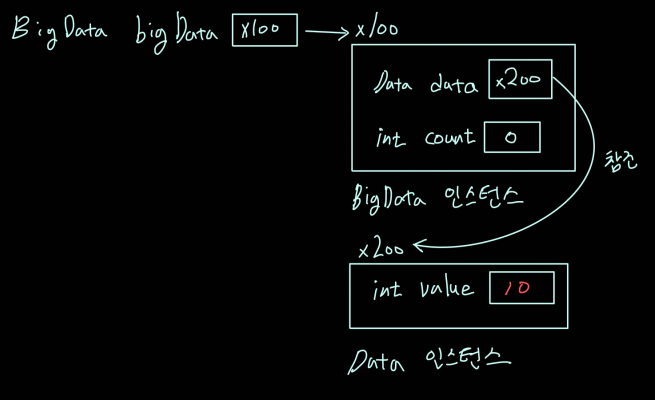 bigData.data = new Data(); //Data 클래스의 인스턴스 메모리주소 대입