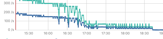일단 거두절미하고 ES의 Indexing Rate (/s)의 변화부터 보자