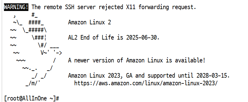 - 생성된 인스턴스 ssh 접속 확인(ALLIn-one)