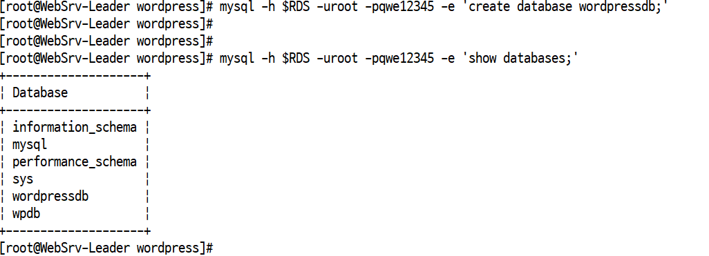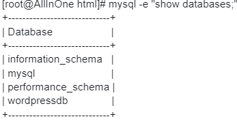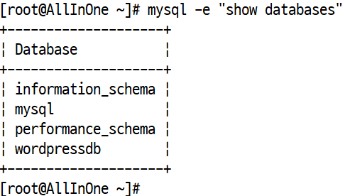 - [root@AllInOne html]# mysql -e "create database wordpressdb"