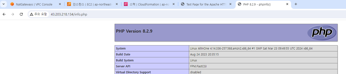 - php 사이트 호출 확인 (curl http://43.203.218.134/info.php)