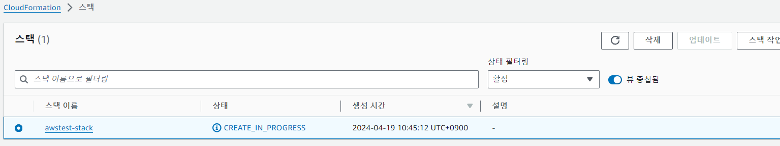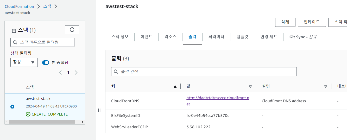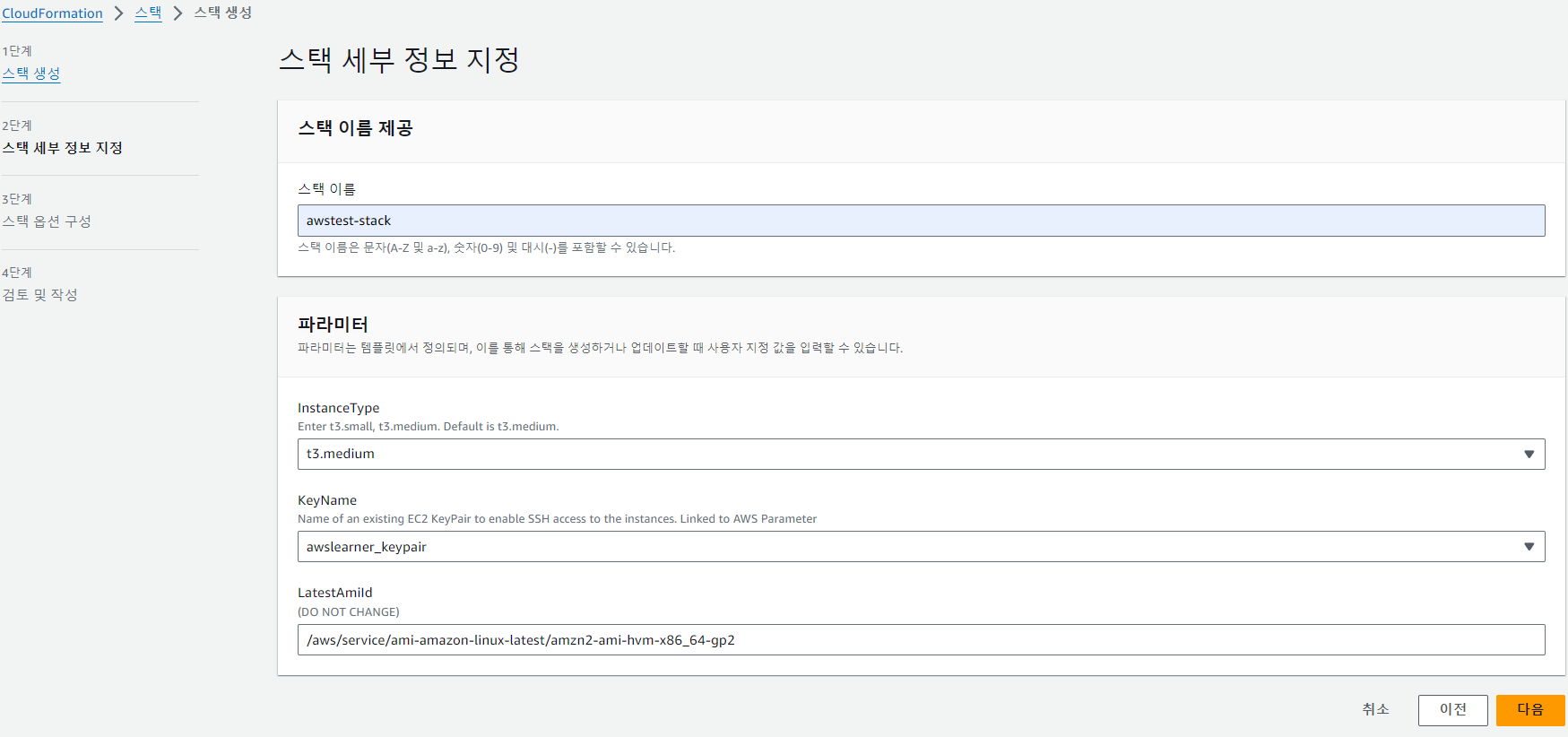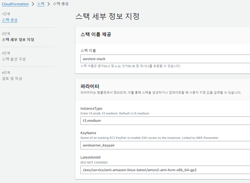 *스택생성 / 이름 지정 / URL 입력, 키 정하고 , 승인~ 에 체크