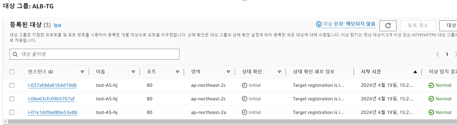 - 대상 그룹에서 자동으로 생성된 인스턴스 확인