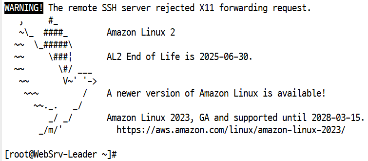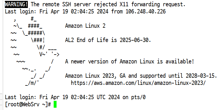 - 생성된 인스턴스 ssh 접속 확인(WebSrv)