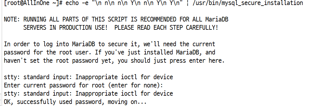 - MySQL을 보안 설정하는 동안 대화형으로 진행되는 프롬프트에 자동으로 응답