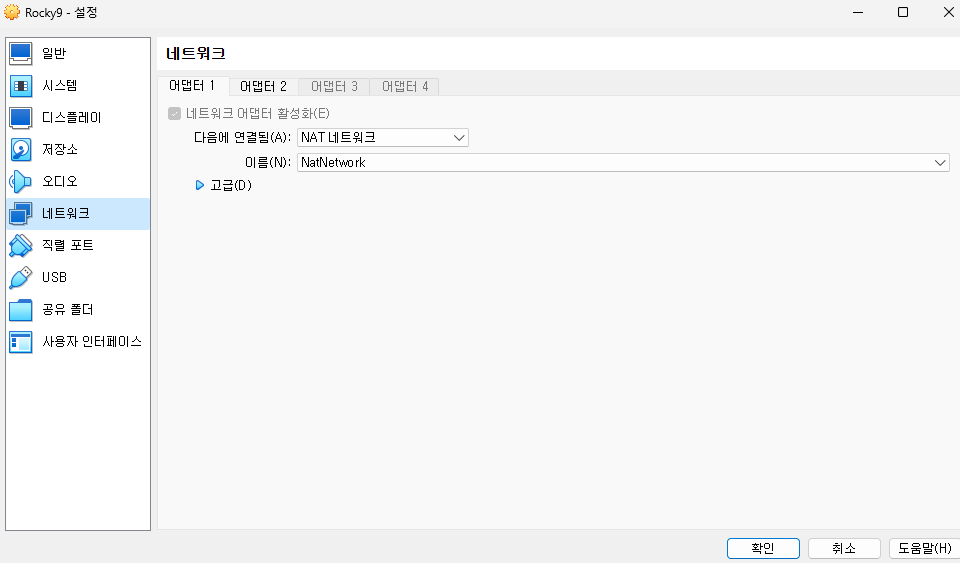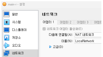 - 네트워크 켬, 호스트 이름(www), Kump 체크 해제 ,