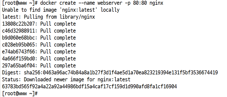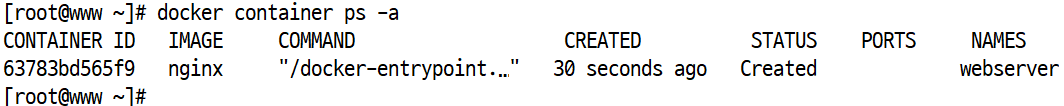 - docker container create 명령어로 이름과 포트번호 지정하여 container 생성 ( 이미지 자동으로 생성 )