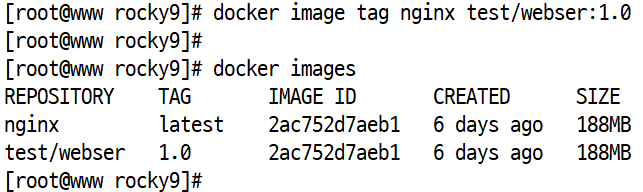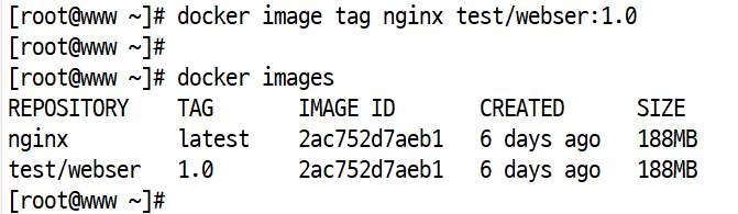 - 다운 받은 nginx를 태그 설정 ( test/webser : 1.0 )