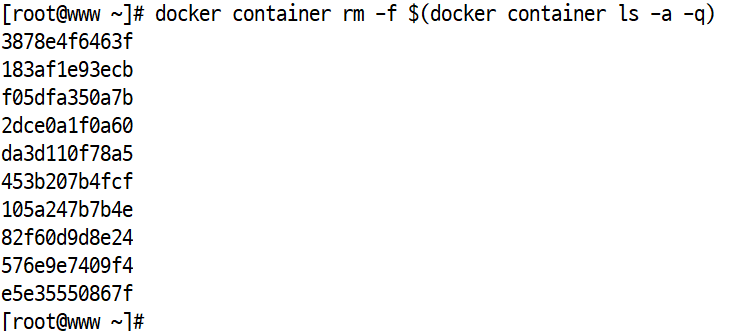 - 생성된 컨테이터 삭제 ( 한번에 )